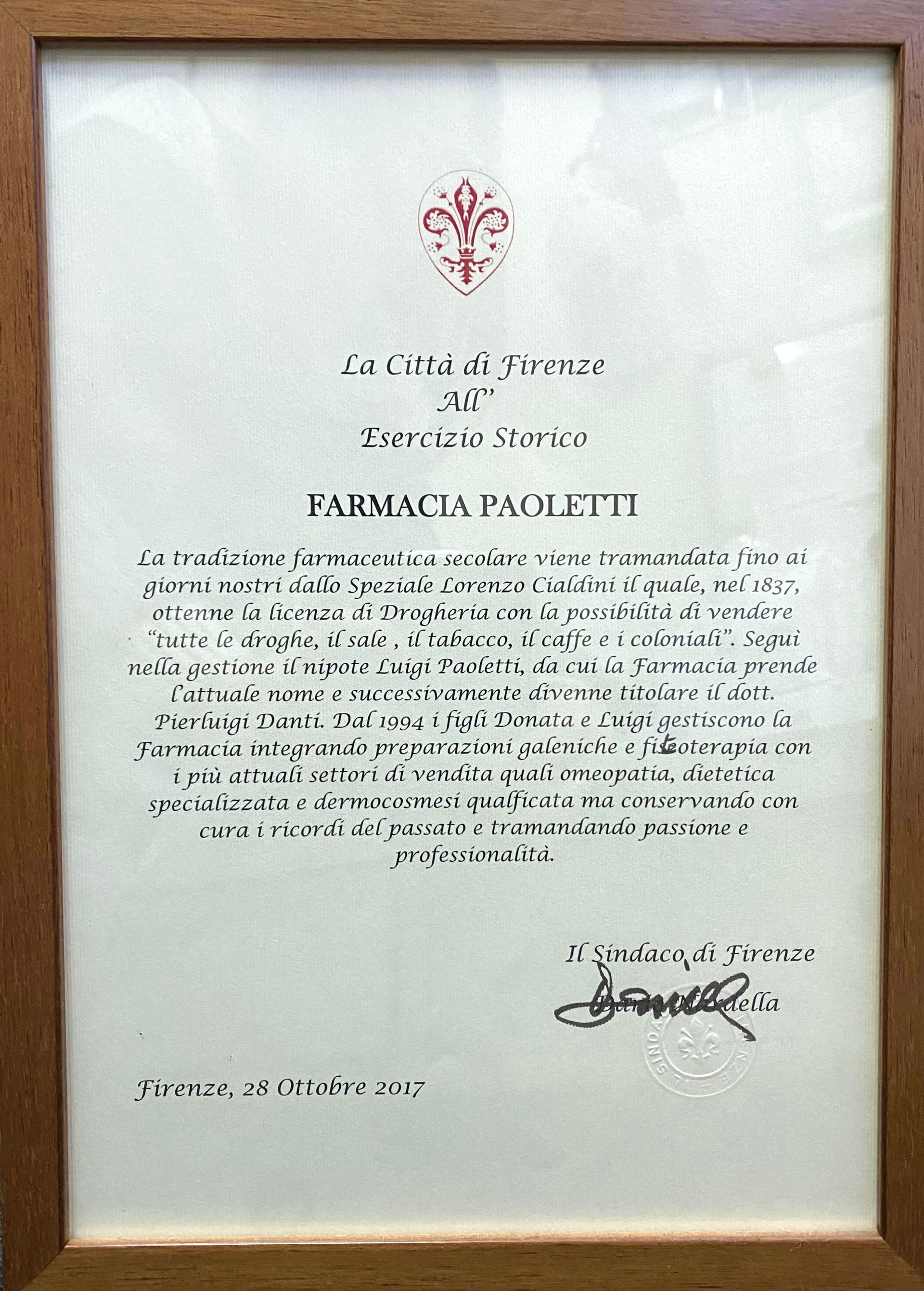 è presente a Firenze da più di due secoli ed è catalogata tra