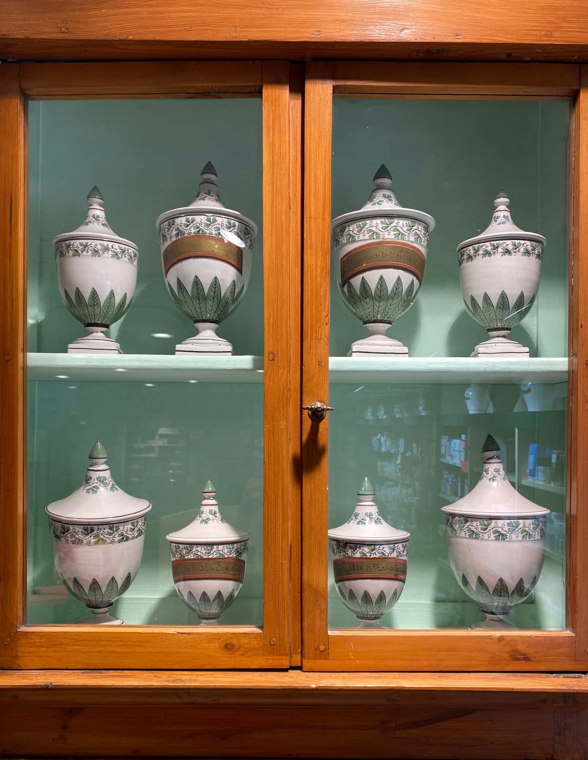 I locali della farmacia mantengono ancora oggi parte dell'arredo ligneo originale e sono ancora conservate le targhe marmoree, vasi e testi antichi originali di farmacia, tra i quali una copia dell’Antico Ricettario Fiorentino.