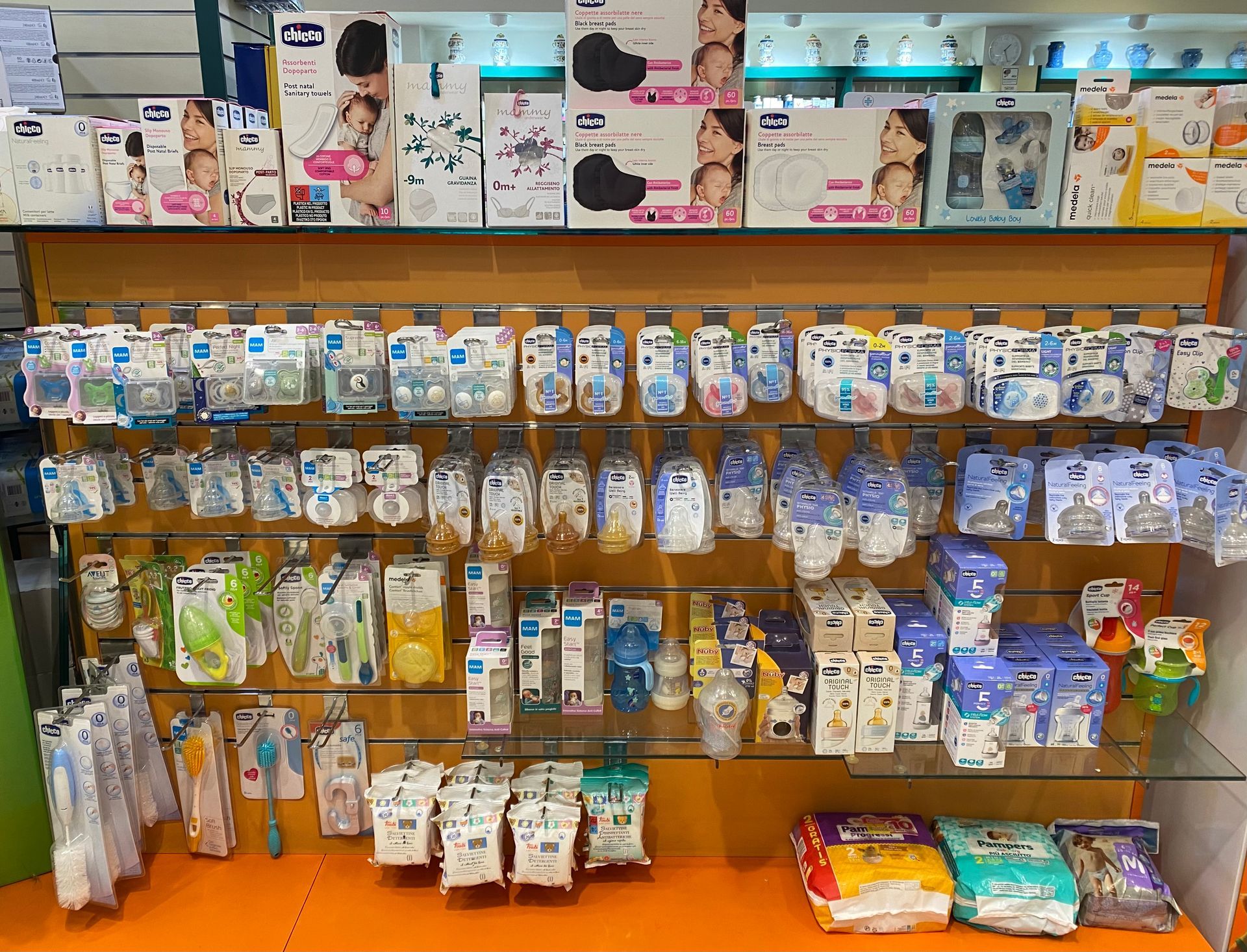A questo si aggiungono tutti gli accessori per l'allattamento artificiale e al seno, come biberon, tettarelle, ciucci, paracapezzoli, coppette e tiralatte; e una fantastica selezione di giochi per tutti i bambini!